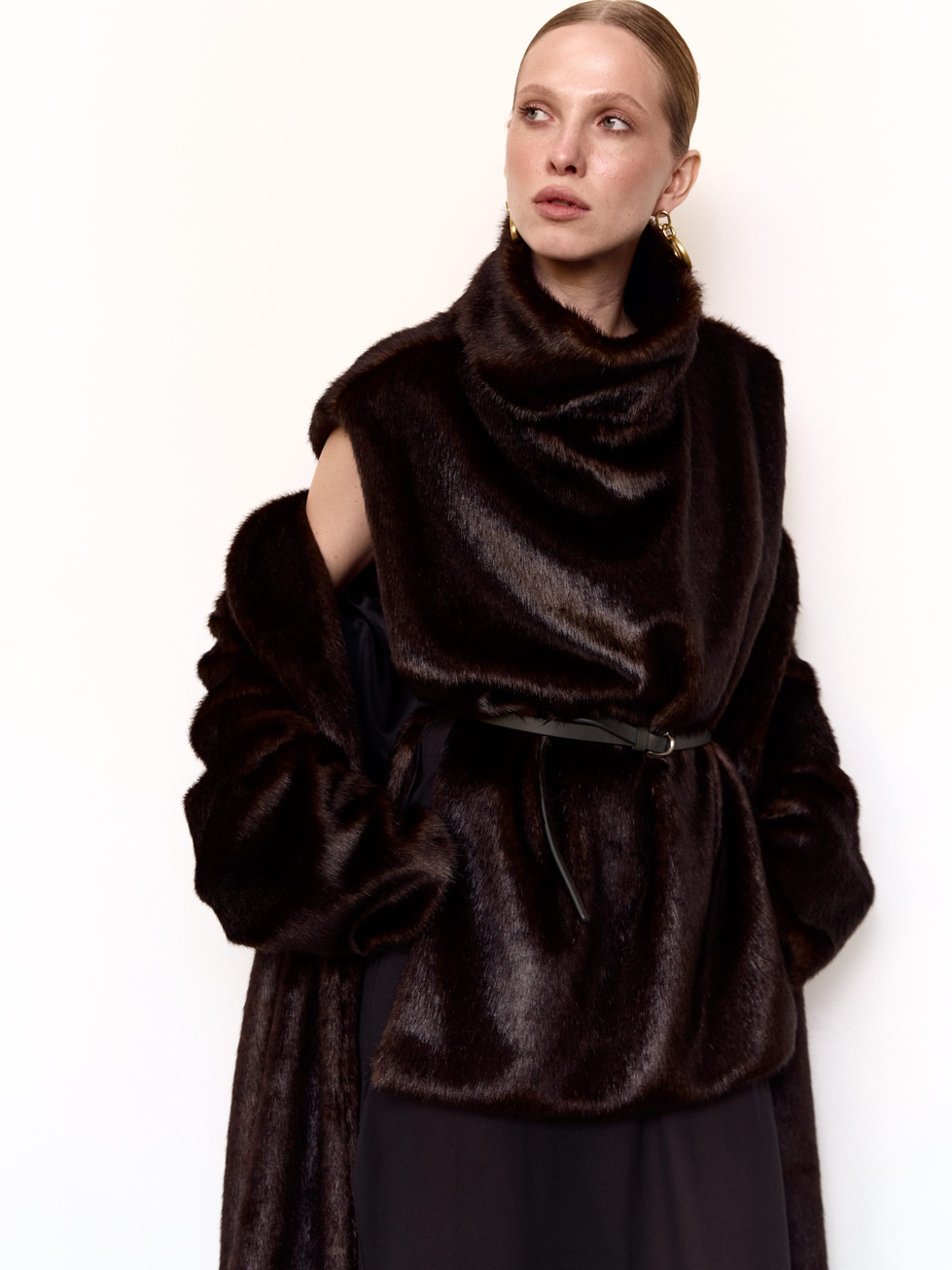 Ecofur Scarf comes in a dark-brown colour and midi length.